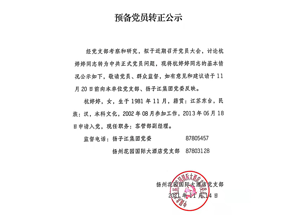 揚(yáng)州花園國際大酒店有限公司