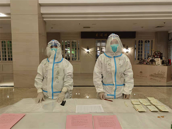 由于客房人手不足,下一批來揚(yáng)支援的醫(yī)護(hù)人員即將到來需要入住房間,需要給即將到來的醫(yī)護(hù)人員做準(zhǔn)備工作,我們在崗人員不分部門、不分崗位,樓上樓下的去整理房間,換下床單被套,汗水也濕透了我們的工作服。有一次我結(jié)束工作已經(jīng)睡覺了,大概在半夜兩點(diǎn)多,接到電話通知我們要接待臨時(shí)來的醫(yī)護(hù)工作者,我立刻爬起來趕到工作崗位,這一刻,大家都擰成一股繩,齊心協(xié)力做好工作,沒有任何的抱怨。這一刻,我深知團(tuán)隊(duì)的力量在任何時(shí)候都能發(fā)揮著強(qiáng)大的力量,這段經(jīng)歷也深深影響者我后來的工作,拼搏、忘我、團(tuán)結(jié)、奮進(jìn),我想這也是我這段時(shí)間的收獲吧。